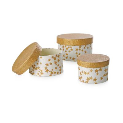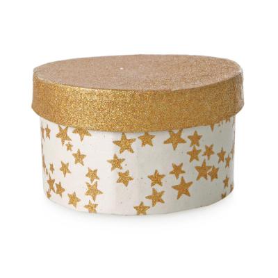 Die runde Geschenkbox mit goldenem Deckel, der mit funkelnden Sternen in Gold bedruckt ist, verleiht jedem Geschenk eine edle und festliche Note. Sie eignet sich ideal für besondere Anlässe wie Weihnachten oder Geburtstage und bietet eine stilvolle Möglichkeit, kleine Präsente elegant zu verpacken.