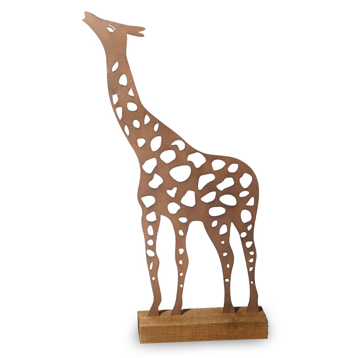Verleihen Sie Ihrem Zuhause einen Hauch von Safari mit diesem eleganten Metall Giraffen-Aufsteller. Gefertigt aus hochwertigem, robustem Metall bietet er eine langlebige und stilvolle Dekoration für Innenräume oder den Garten. Das zeitlose Design mit durchbrochenem Muster setzt spielerische Akzente und fügt sich nahtlos in jede Umgebung ein. Ideal als Geschenk oder als raffinierter Blickfang in Ihrem eigenen Zuhause. Maße: ca. 30 cm hoch. Unkomplizierte Pflege und standfest durch stabilen Sockel.