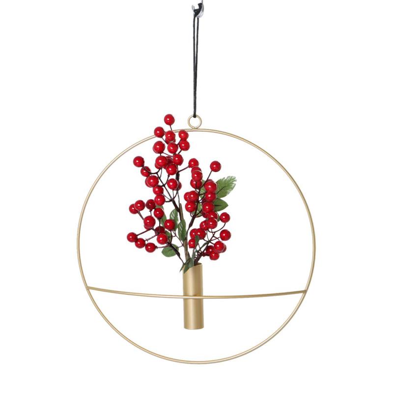 Verleihen Sie Ihrem Wohnraum Eleganz mit diesem goldfarbenen Metallring mit Vaseneinsatz. Perfekt zum Aufhängen oder als Tischdekoration, bietet er Platz für frische oder künstliche Blumen. Der minimalistische Stil passt in jedes Interieur und setzt stilvolle Akzente. Ideal für besondere Anlässe oder als alltäglicher Blickfang. Maße: Ring-Durchmesser ca. 30 cm. Ein vielseitiges Deko-Element, das Staunen erregt und das Ambiente verfeinert. Bereichern Sie Ihr Zuhause mit diesem eleganten Design!