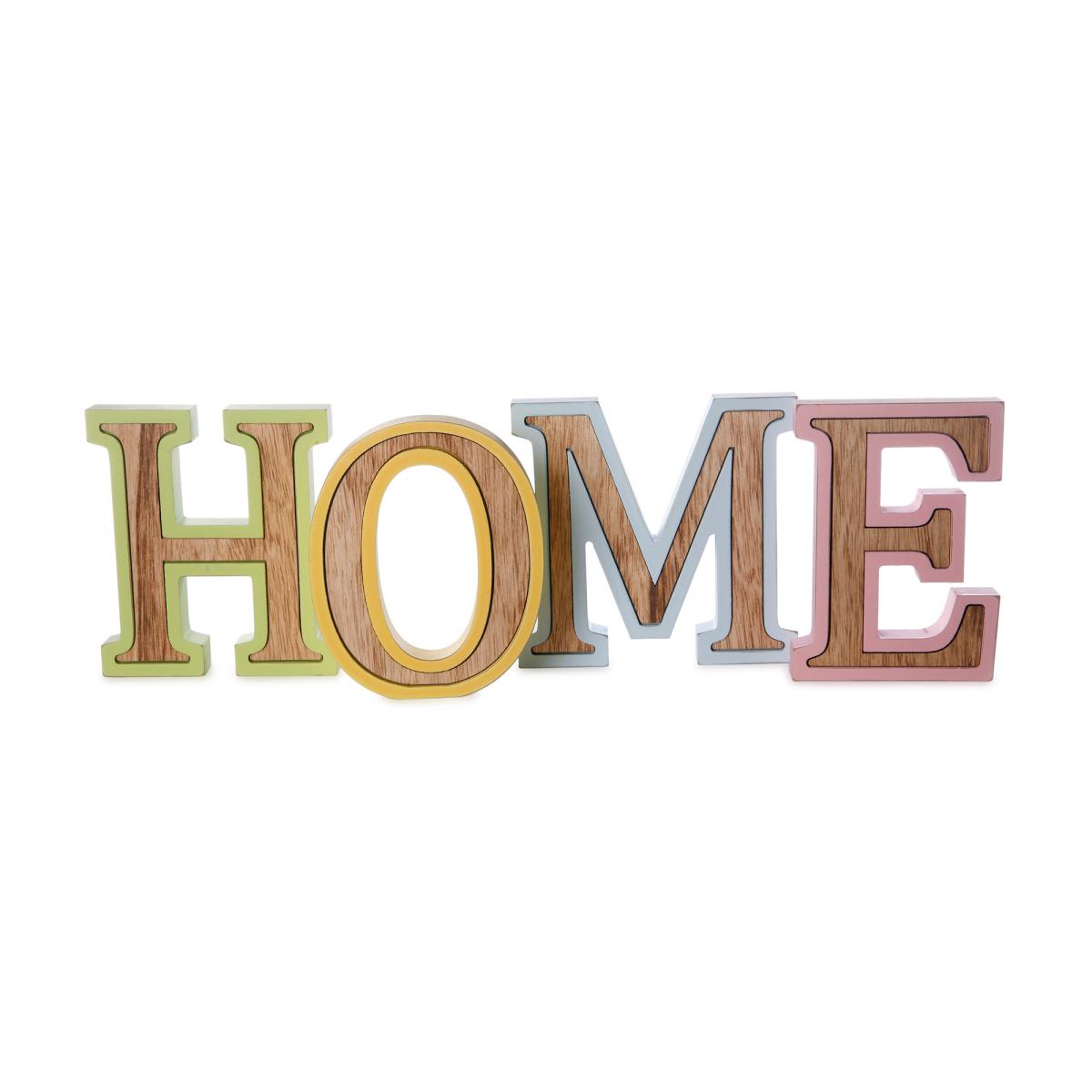 Holen Sie sich ein Stück Wärme und Stil mit unserem "Home"-Schriftzug. Dieses Dekorationsstück aus hochwertigem Holz mit farbenfrohen Akzenten bringt Gemütlichkeit in jeden Raum. Perfekt für Wohn- oder Schlafzimmer, besticht es durch ein modernes, einladendes Design. Die Kombination aus natürlicher Holzoptik und sanften Farben fügt sich harmonisch in jedes Ambiente ein. Ideal als Geschenk oder um Ihr eigenes Zuhause zu verschönern. Ein Must-Have für alle, die Wert auf stilvolle Details legen.