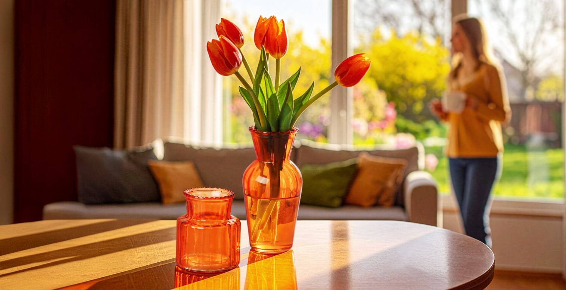 Glasgefäße wie Vasen und Teelichthalter in frühlingshaften Farben bringen Leichtigkeit und Frische in jedes Zuhause. Zarte Pastelltöne, transparente Optiken und sanfte Farbverläufe schaffen eine harmonische, saisonale Atmosphäre und setzen Blumen, Kerzen oder Dekoarrangements stilvoll in Szene.