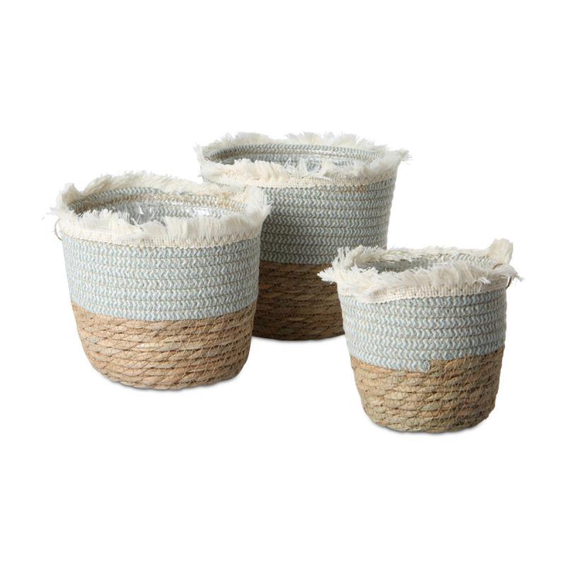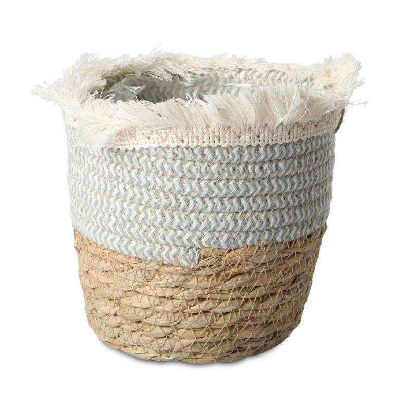 Entdecken Sie den charmanten Korb-Übertopf mit Fransen in Blau. Dieser stilvolle Übertopf vereint natürliche Materialien mit einem modernen Design und ist ideal, um jedem Raum einen Hauch von Boho-Eleganz zu verleihen. Die geflochtene Struktur mit blauen Akzenten und verspielten Fransen macht ihn zu einem einzigartigen Dekoelement. Perfekt für Pflanzen oder zur Aufbewahrung kleiner Gegenstände. Robust und vielseitig, bringt er frischen Wind in Ihr Zuhause!