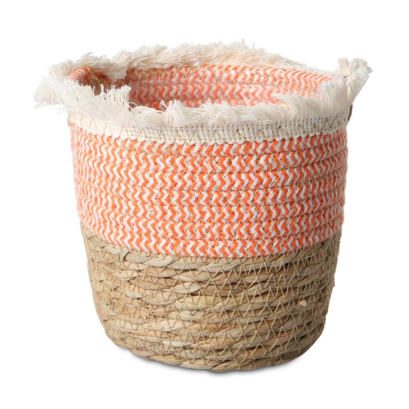 Dieser charmante Korb-Übertopf in strahlendem Orange mit verspielten Fransen verleiht jedem Raum eine frische und leuchtende Note. Aus robustem Naturmaterial gefertigt, ist er ideal für Pflanzen oder als dekorativer Aufbewahrungskorb. Der handgefertigte Look bringt einen Hauch von Bohème-Stil in Ihr Zuhause. Perfekt, um Pflanzen oder kleine Accessoires stilvoll zu präsentieren. Größe: 30 cm Durchmesser, 28 cm Höhe. Kombinierbar in jedem Wohnbereich für einen fröhlichen Farbakzent.