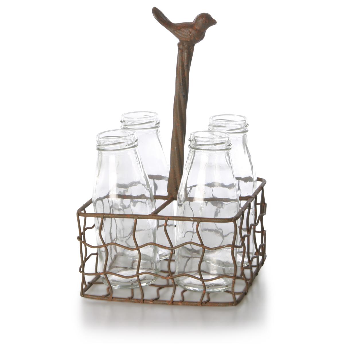 Verleihen Sie Ihrem Interieur einen charmanten Vintage-Look mit unserem Drahtständer, der vier elegante Glasvasen enthält. Perfekt für frische Blumen oder kleine Dekorationen. Der robuste Metallrahmen mit filigranem Design bringt Stil und Funktionalität in jeden Raum. Ideal für Tischdekoration oder als einzigartiges Geschenk. Die klare, einfache Struktur der Glasvasen harmoniert wunderbar mit dem rustikalen Charme des Drahtständers. Ein zeitloses Accessoire für Ihr Zuhause.