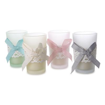 Duftkerze im Teelichtglas mit Spitze Farbmix