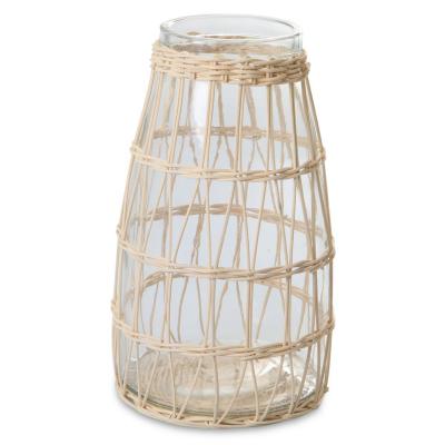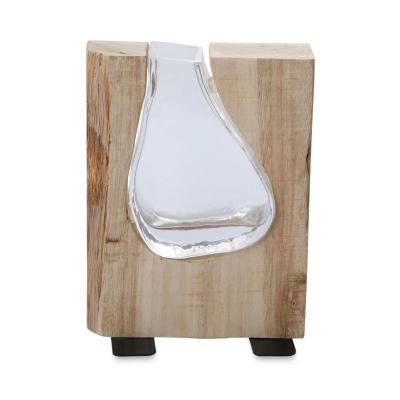 Die Glasvase mit Holzständer ist zeitlos und passt in jedes Interieur.