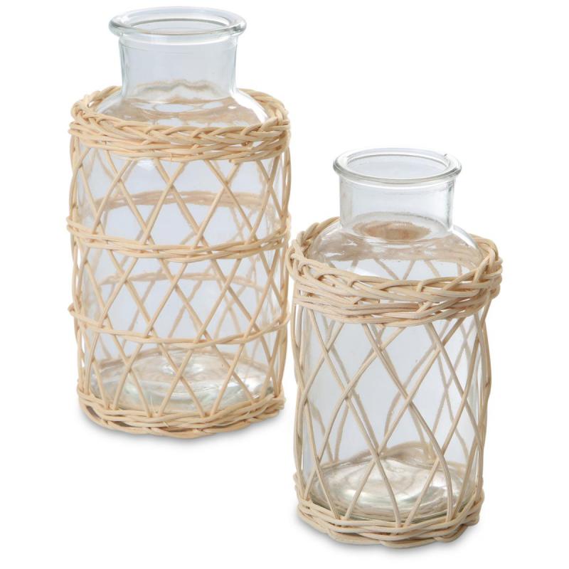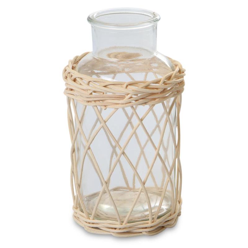Die kunstvoll geflochtene Rattan-Hülle umschließt das hochwertige Glasgefäß und sorgt für ein harmonisches Design.Die Kombination aus robustem Glas und feinem Rattan verleiht ihr einen zeitlosen Charme.