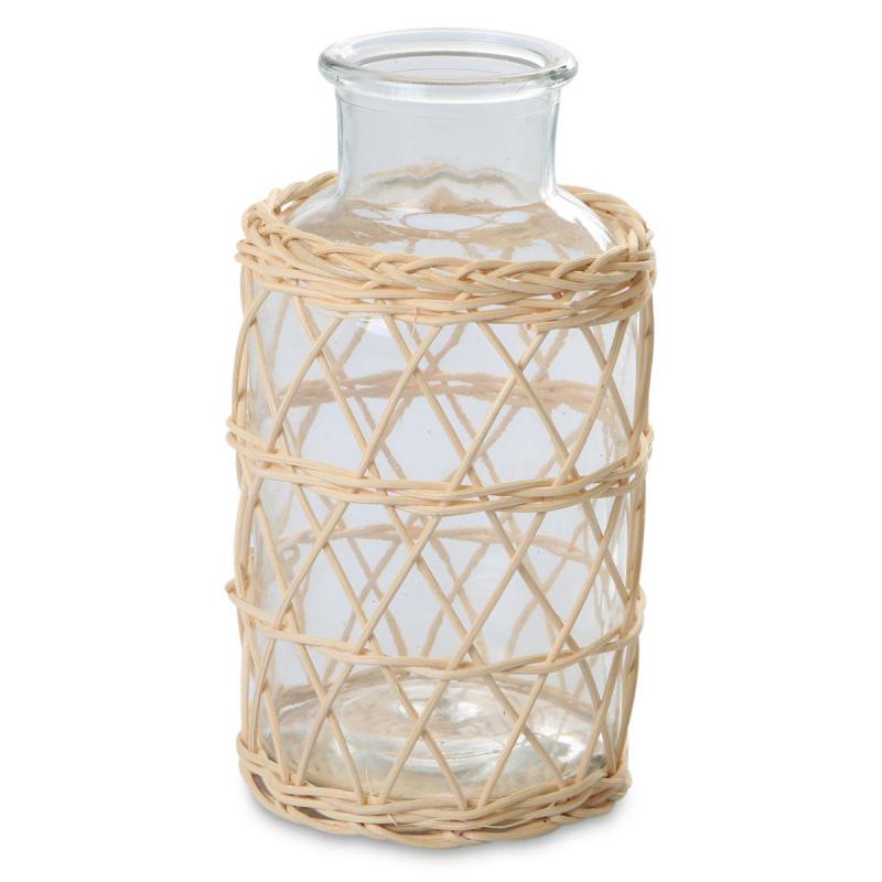 Die kunstvoll geflochtene Rattan-Hülle umschließt das hochwertige Glasgefäß und sorgt für ein harmonisches Design.Die Kombination aus robustem Glas und feinem Rattan verleiht ihr einen zeitlosen Charme.
