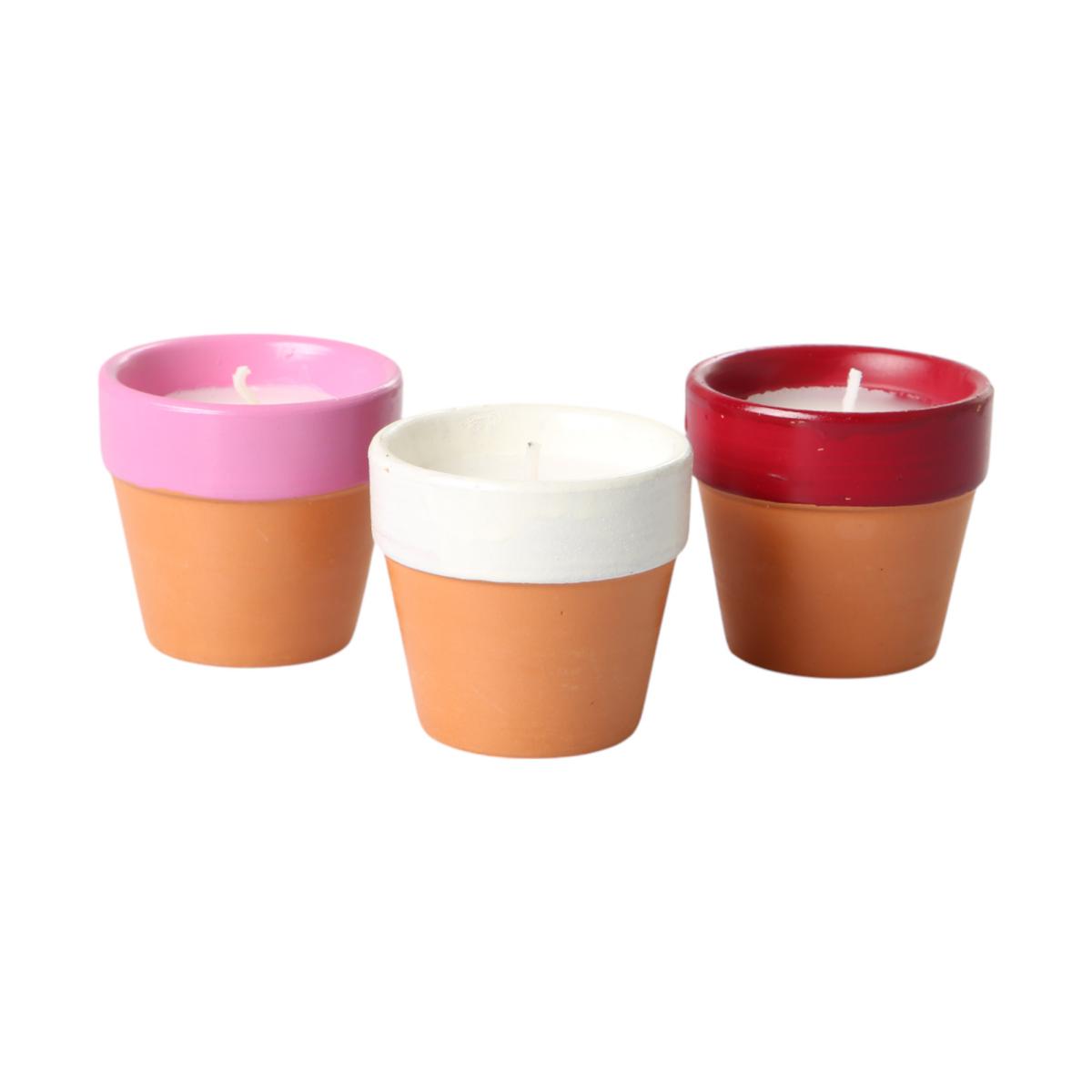 Kerze im Terrakottatopf weiß/rot/rosa Mix