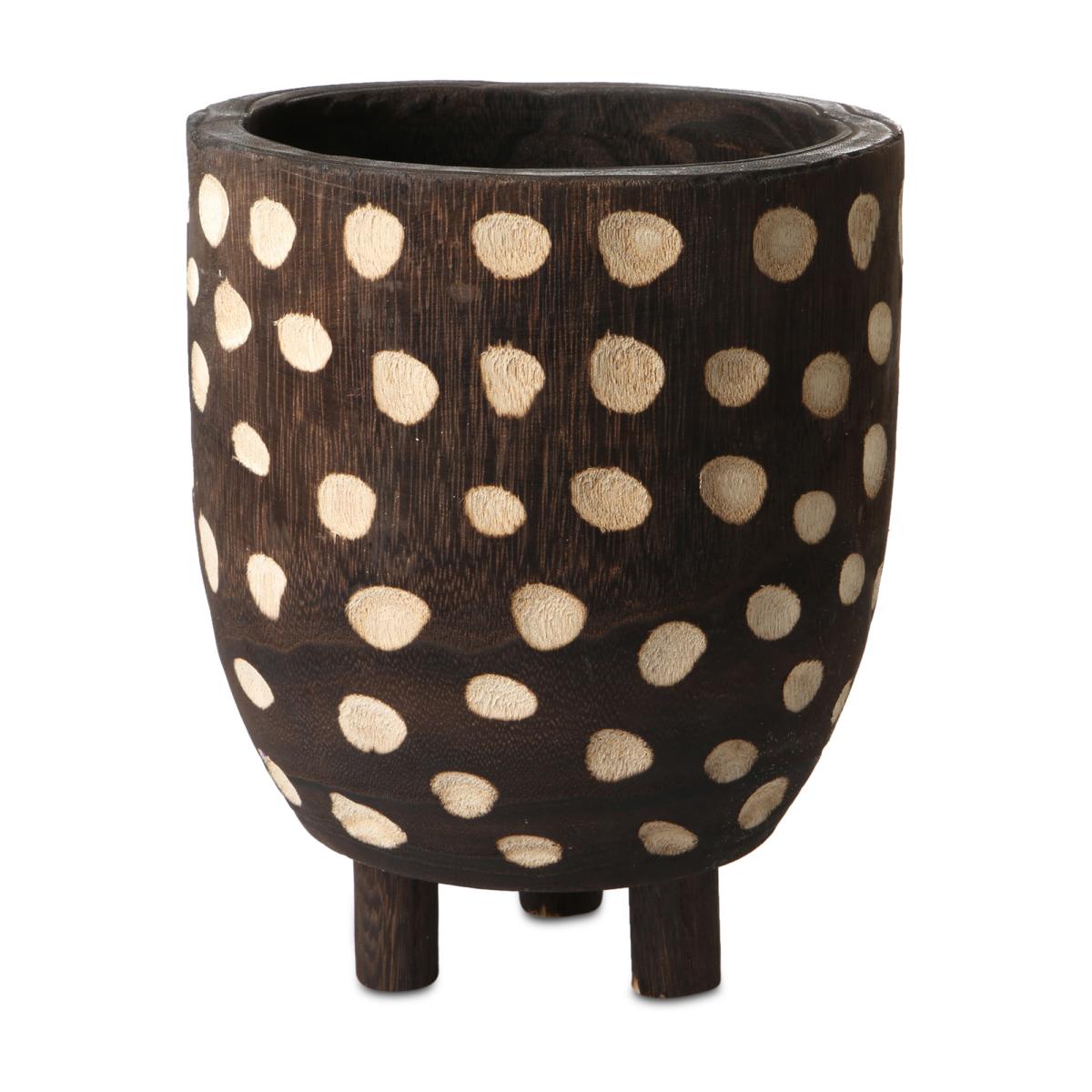 Erleben Sie natürliche Eleganz mit dem Paulownia Holzgefäß auf Füßen. Dieses handgefertigte Dekorstück besticht durch sein modernes Punktedesign und seine langlebige Konstruktion. Perfekt als stilvolles Pflanzgefäß oder als einzigartiges Dekoelement in jedem Raum. Leicht und robust, bringt es Wärme und Charme in Ihr Zuhause. Ein Must-have für Liebhaber außergewöhnlicher Inneneinrichtung. Maße: 20 cm Höhe, 16 cm Durchmesser. Verleihen Sie Ihrem Wohnambiente einen Hauch von Natur!