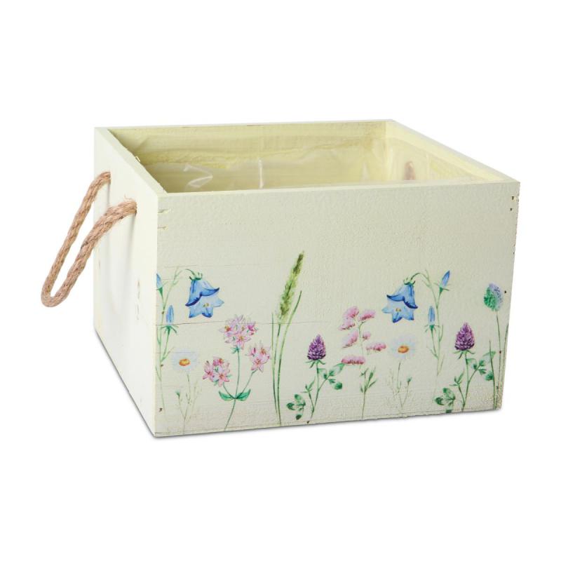 Entdecken Sie unsere charmante quadratische Holzkiste, verziert mit einem zarten Blumendesign. Perfekt zum Aufbewahren kleiner Schätze oder als dekoratives Element in Ihrem Zuhause. Die robuste Konstruktion sorgt für Langlebigkeit, während das florale Muster eine frische, natürliche Atmosphäre verleiht. Ideal als Geschenk oder zur Organisation Ihrer Lieblingsstücke. Bringen Sie mit dieser bezaubernden Holzkiste einen Hauch von Natur in Ihre Räume. Maße: 20x20x15 cm.