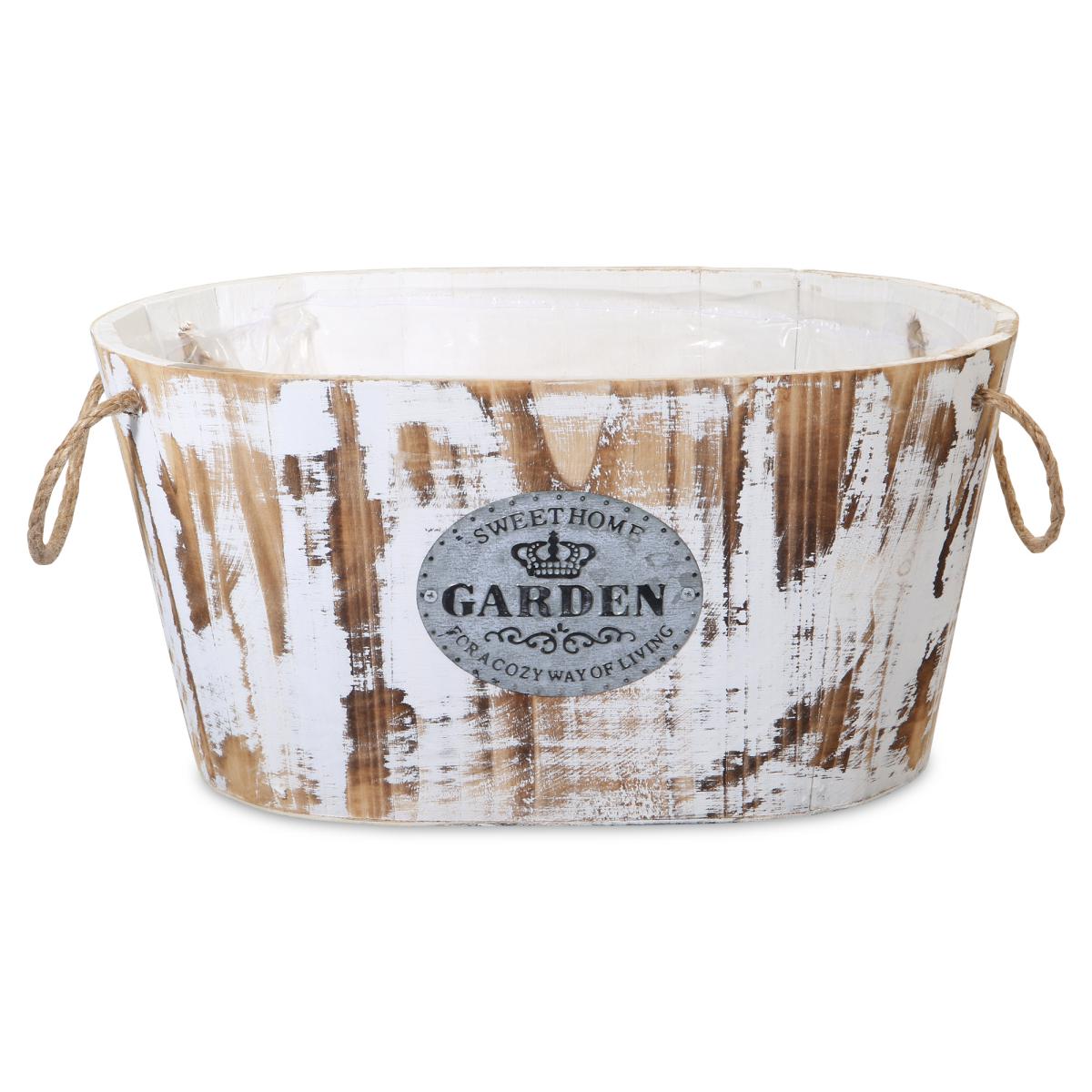 Entdecken Sie unseren ovalen Pflanztopf mit rustikaler Kordel. Dieser stilvolle Topf verleiht jedem Raum oder Garten einen Hauch von Vintage-Charme. Ideal für alle Pflanzenarten, aus robustem Material gefertigt und mit ansprechender Aufschrift verziert. Perfekt für den Innen- und Außeneinsatz. Die seitlichen Kordelgriffe ermöglichen ein einfaches Umstellen. Maße: 35 cm x 25 cm x 17 cm. Verleihen Sie Ihrem Zuhause mit diesem einzigartigen Pflanztopf einen gemütlichen Touch.