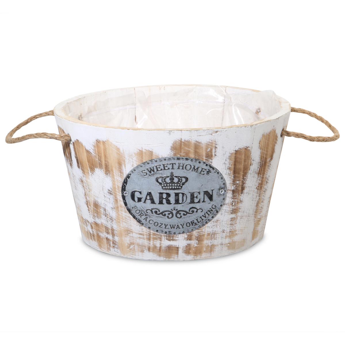 Erleben Sie rustikalen Charme mit diesem runden Pflanztopf aus Holz. Perfekt für drinnen und draußen, verleiht die dekorative Kordel einen Hauch von Eleganz. Ideal für Blumen oder Kräuter, ist er vielseitig einsetzbar und robust gefertigt. Sein Vintage-Design mit "Sweet Home Garden"-Schriftzug ergänzt jeden Wohnstil. Pflegeleicht und stilvoll – ein Muss für Pflanzenliebhaber.