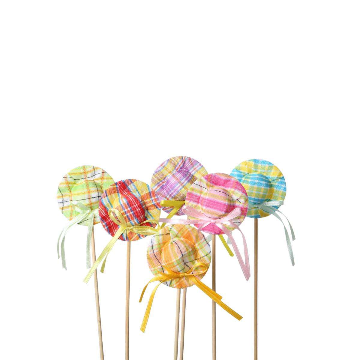 Der Sonnenhut am Stick ist ein charmantes Accessoire für jede Dekoration. Die fröhlich-bunte Auswahl an karierten Stoffen bringt sofort Sommerstimmung und Frische in Ihr Zuhause. Ideal für kreative Bastelprojekte, florale Arrangements oder als verspielte Tischdekoration für Partys und Feierlichkeiten. Jeder Hut ist mit liebevollen Details gestaltet und mit einem praktischen Stab ausgestattet, um vielseitige Einsatzmöglichkeiten zu gewährleisten. Bringen Sie Farbe und Freude in jeden Raum mit diesem entzückenden Sonnenschirm-Accessoire!