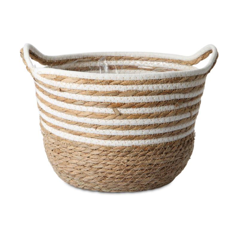 Korbübertopf - Weiß/Natur
