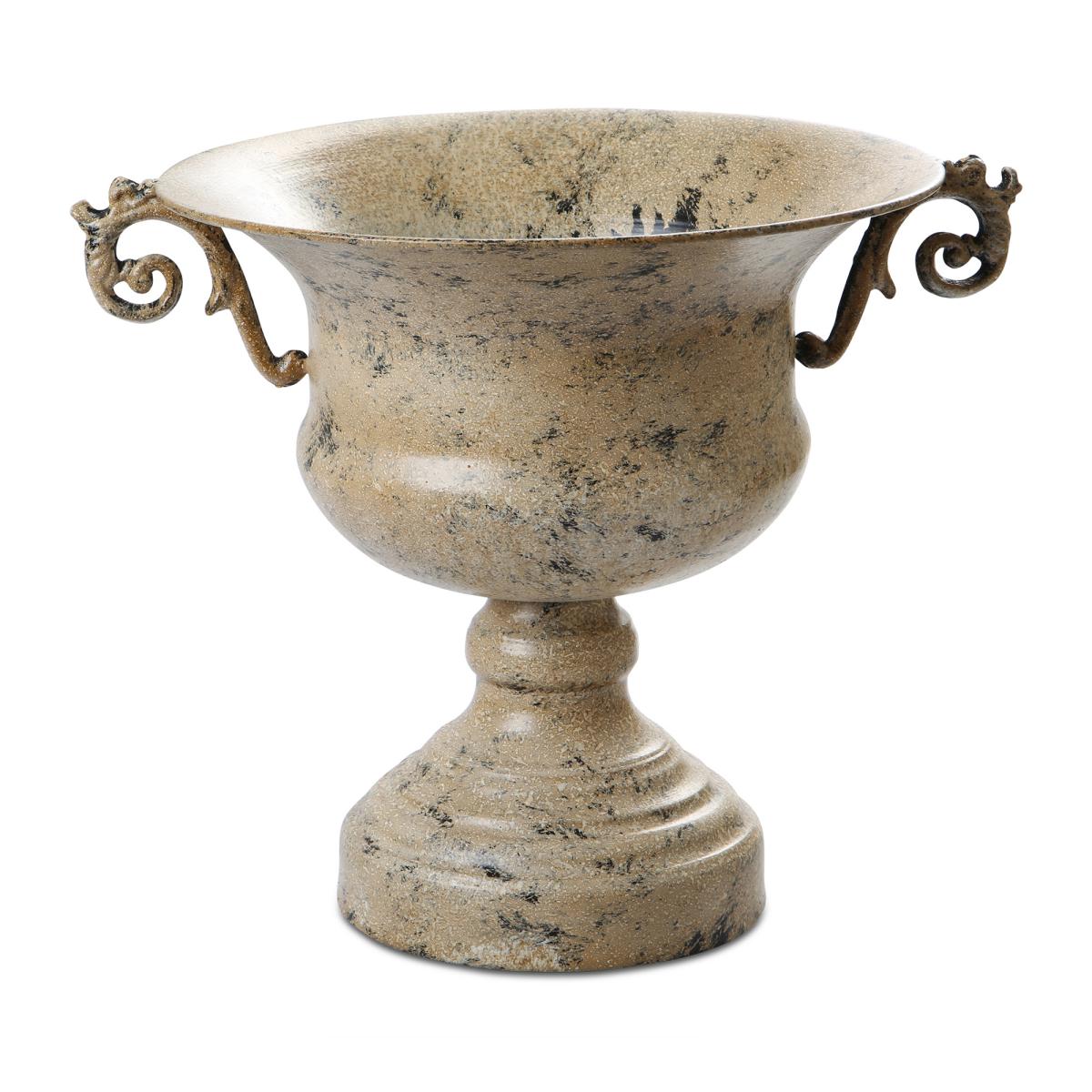 Dieser Pokal in Antikoptik aus robustem Blech besticht durch sein historisches Design und seine rustikale Ausstrahlung. Ideal als dekoratives Element in verschiedenen Arrangements, bringt er einen Hauch von Vintage-Charme in jedes Ambiente. Perfekt für kreative Dekorationen und als stilvoller Blickfang.