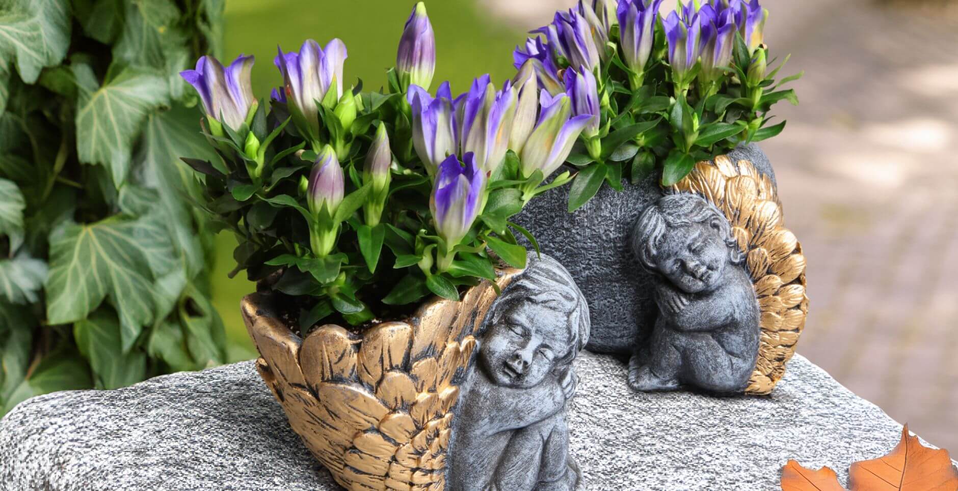 Als Großhändler bieten wir Ihnen eine umfassende Auswahl an Trauerartikeln für einfühlsame Gedenk- und Trauerfeiern. Ob hochwertige Zementgefäße, klassische Grabvasen, Pflanzschalen, Grablichter und Kranzschleifen oder herkömmliche Gedenksymbole & beschützende Engel in vielen Formen. Profitieren Sie von attraktiven Preisen und erstklassiger Qualität und sorgen Sie im passenden Rahmen für einen würdigen und respektvollen Abschied.